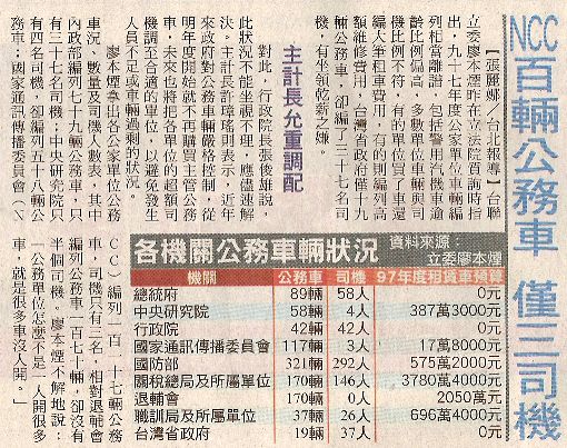 台聯立委廖本煙昨在立法院質詢時指出,九十七年度公家單位車輛編列相當離譜,